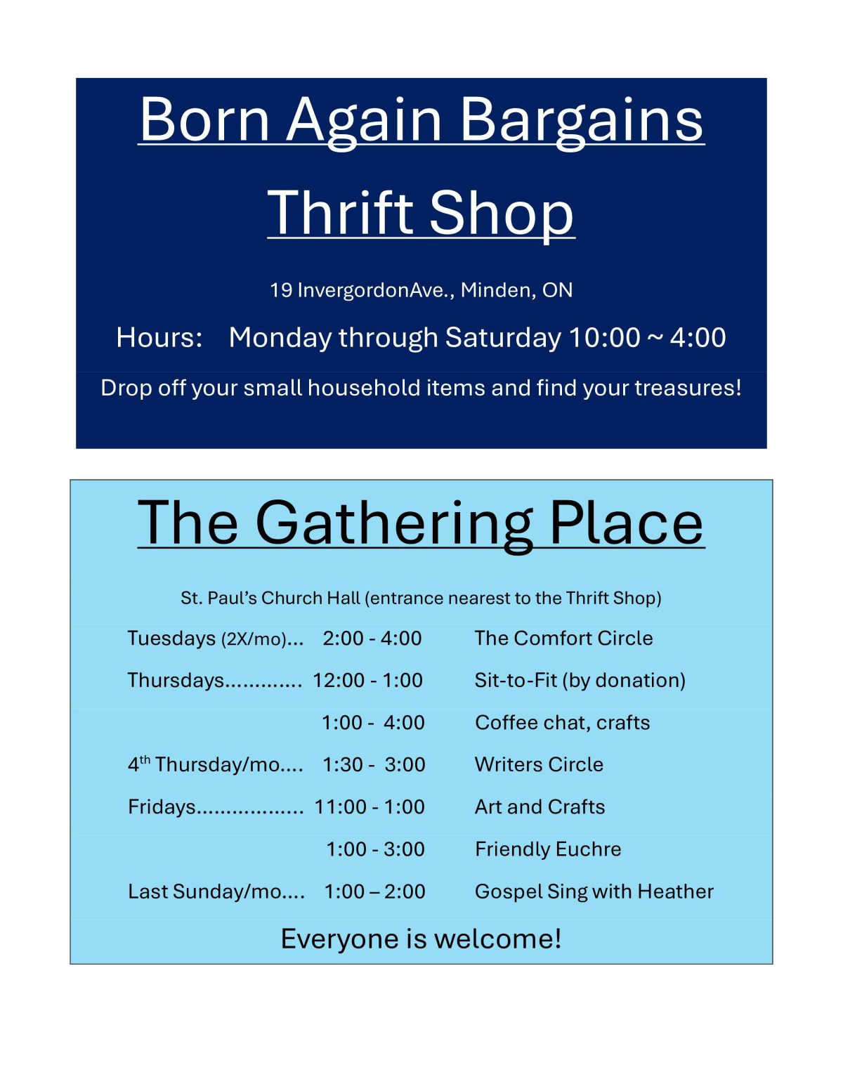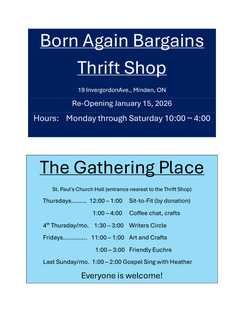 Please Note: Born Again Bargains -The Thrift Shop is usually closed when school busses are cancelled. Safety is our priority. We are sorry for any inconvenience.